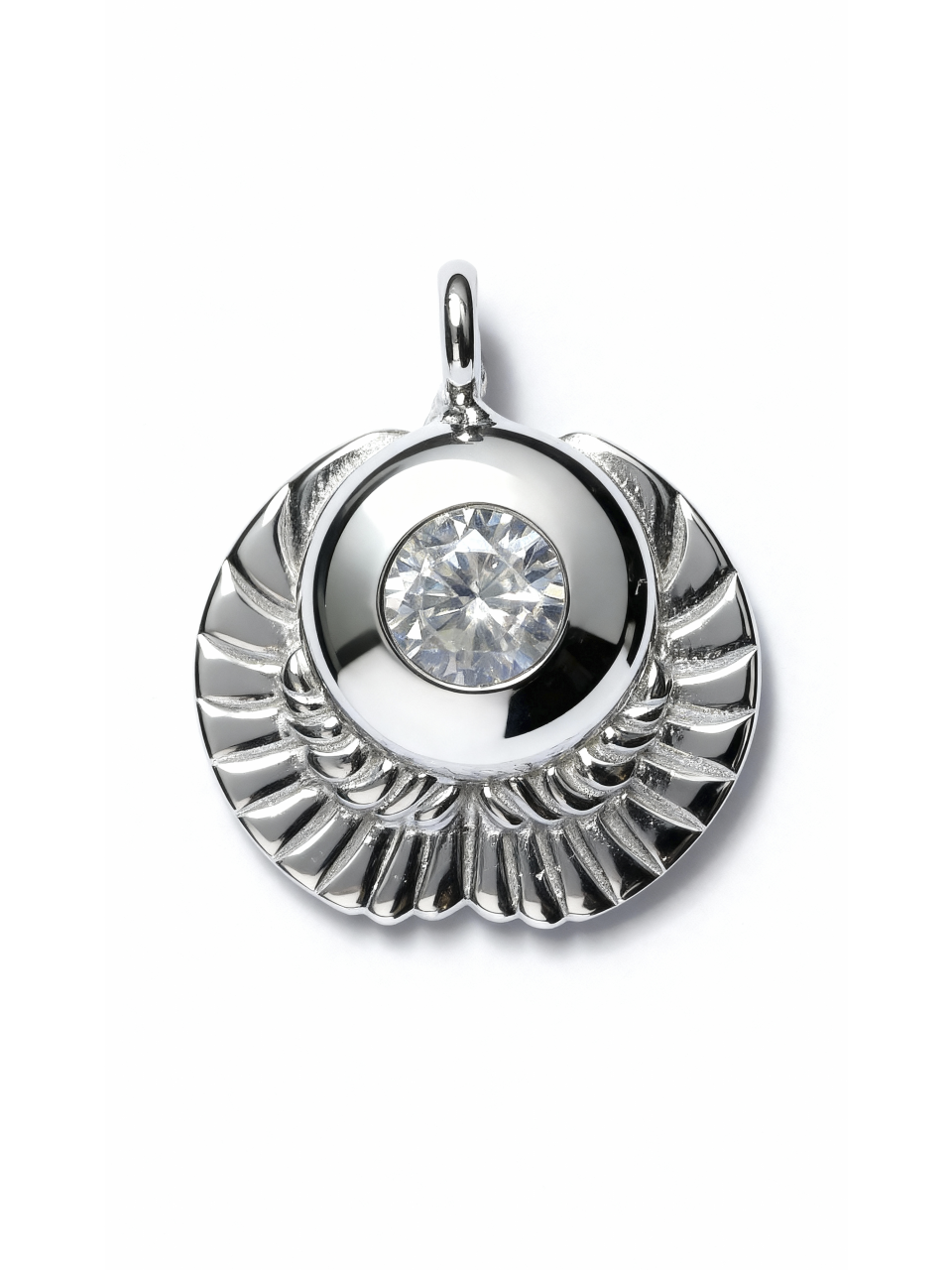Design: Scallop shell–inspired sculptural form with symmetrical relief detailing